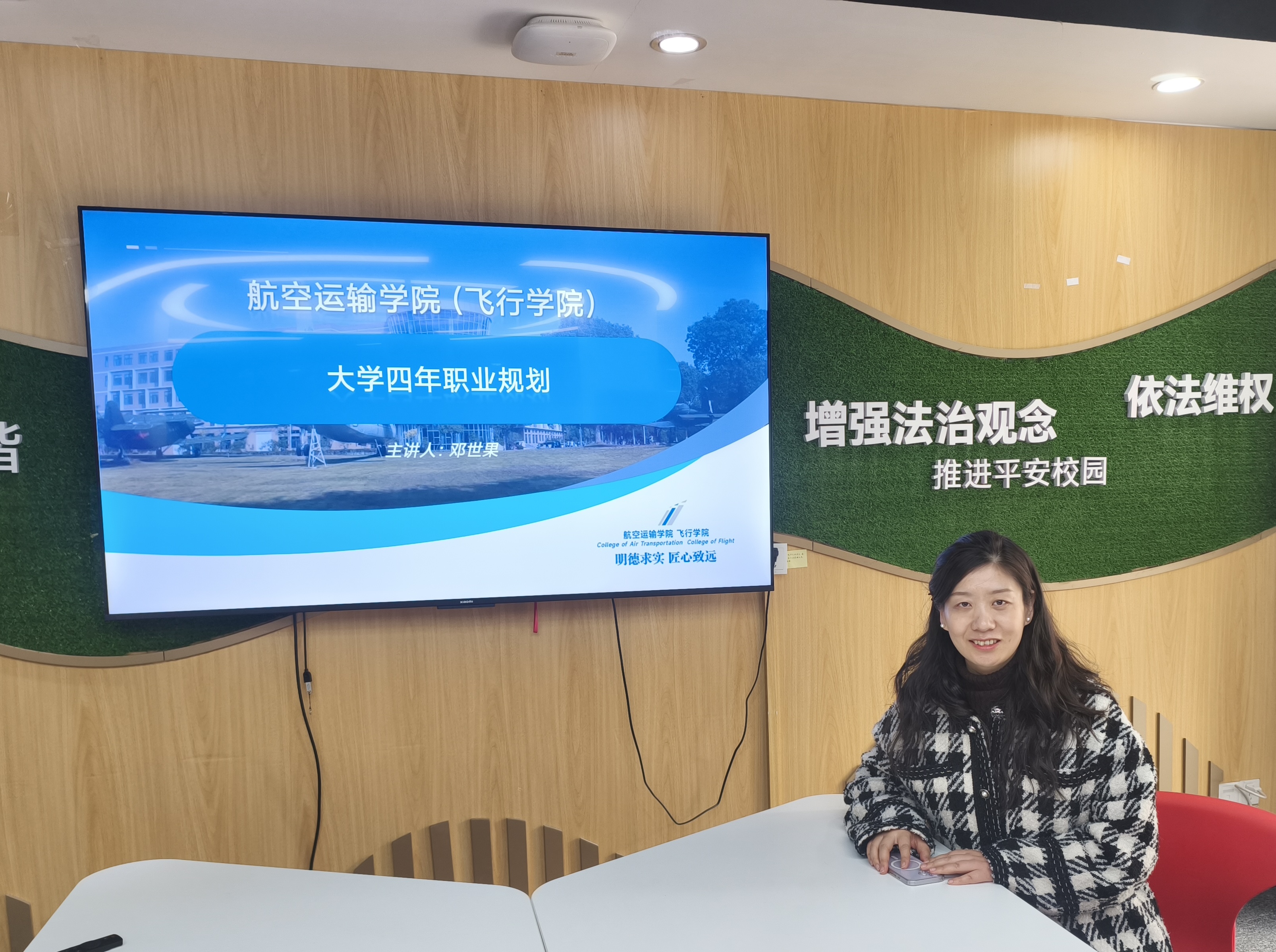 班主任邓世果老师为同学们带来精彩的讲话,她指出:作为25级交通管理专业新生,首先要对专业拥有基本认知,学院通过开展专业导论课程,让同学们对于交通管理这一专业有了一定认识;然而,只有经历严格的选拔与竞争,才有成为一名真正航空人的资格。同学们要在刚入校时立下一定的目标,无论是保研考研,就业实习,还是出国深造,都要有所规划,为未来发展打下基础。谈到大学生创新创业时,她还强调:创新创业不是“单打独斗”,而是团队协作、资源整合的过程,同学们要加强跨学科交流和自我能力提升培养相关兴趣,提升项目综合竞争力。