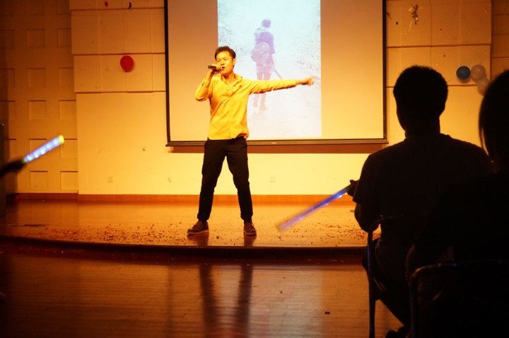 演唱会在《我的舞台》的歌声中拉开帷幕,在座的同学随着音乐的节奏挥舞着荧光棒,接下来的歌曲独唱《你被写在我的歌里》将演唱会渐渐引向高潮,在灯光的衬托下,一首首优美的旋律在耳边流淌,同学们用自己的舞姿和歌声体现出青春的价值,在这个黑夜里唱出了青春的无悔,跳出了青春的激情。在演出中有这样一段话深深的打动了在座的每位同学“我们曾经是单纯的孩子,希望能单纯一辈子,如果可以选择,我们宁愿永远不懂,那些从前不懂的事。青春是挽不回的水转眼消失在指尖,用力地浪费再用力地后悔!让我们用音乐向我们灿烂的青春致敬”。在演唱会的最后,全体参加演唱会的成员为大家献上了一曲《掌声响起》,并带领同学们用荧光拼出了“青春”的字样。